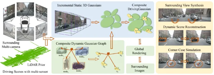 • DrivingGaussian: Composite Gaussian Splatting for Surrounding Dynamic Autonomous Driving Scenes ([2312.07920] DrivingGaussian: Composite Gaussian Splatting for Surrounding Dynamic Autonomous Driving Scenes)