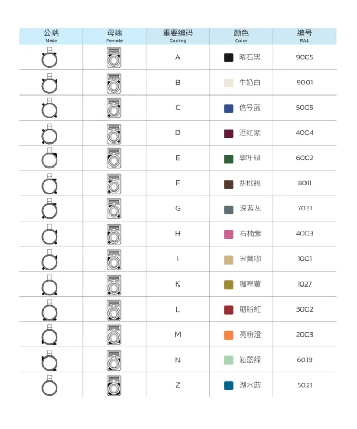★颜色+机械防错:采用14种防错coding与物理编码有防止错误对插的结构设计。